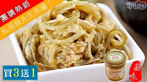 只要249元(3瓶免運)即可享有【私房蔡先生】原價350元絲絲入口泡菜-蒜香1瓶(450g5g/瓶),購滿3瓶再贈1瓶。